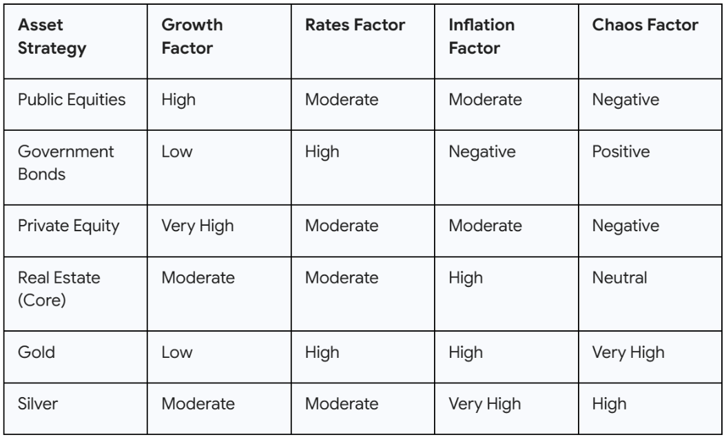 The TPA framework allows the CIO to adjust these factor dials dynamically. In a world characterized by fiscal irresponsibility and monetary expansion, the "Inflation" and "Chaos" factors must be elevated. This is where the strategic and tactical allocation to precious metals demonstrates the superiority of TPA.